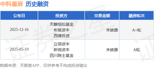 证券之星消息,根据天眼查APP于12月16日公布的信息整理,成都中科星辰信息技术有限公司A+轮融资,融资额未披露,参与投资的机构包括天麒恒松基金,彬复资本,西博投资。