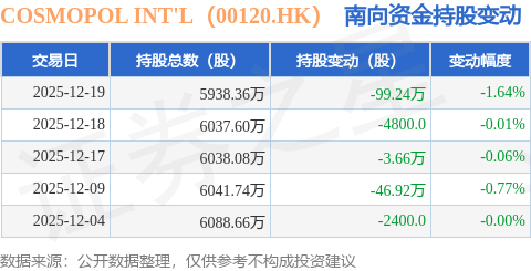 证券之星消息,12月19日南向资金减持99.24万股COSMOPOL INT'L(00120.HK)。近5个交易日中,获南向资金减持的有5天,累计净减持150.54万股。近20个交易日中,获南向资金减持的有20天,累计净减持374.76万股。截至目前,南向资金持有COSMOPOL INT'L(00120.HK)5938.36万股,占公司已发行普通股的3.61%。