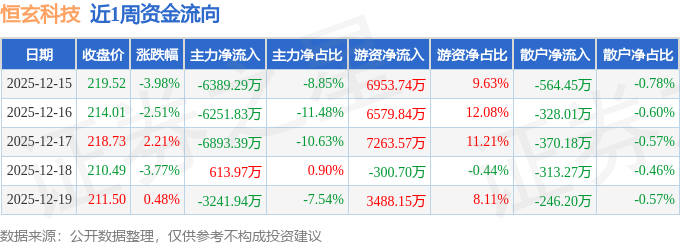 资金流向数据方面,本周恒玄科技主力资金合计净流出2.22亿元,游资资金合计净流入2.4亿元,散户资金合计净流出1822.11万元。本周资金流向一览见下表: