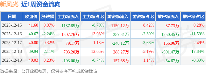 资金流向数据方面,本周新风光主力资金合计净流入999.27万元,游资资金合计净流入1092.64万元,散户资金合计净流出2091.91万元。本周资金流向一览见下表: