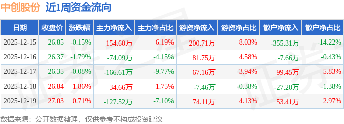 资金流向数据方面,本周中创股份主力资金合计净流出178.95万元,游资资金合计净流入416.27万元,散户资金合计净流出237.32万元。本周资金流向一览见下表: