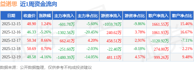 资金流向数据方面,本周益诺思主力资金合计净流出2973.91万元,游资资金合计净流入98.09万元,散户资金合计净流入2875.83万元。本周资金流向一览见下表: