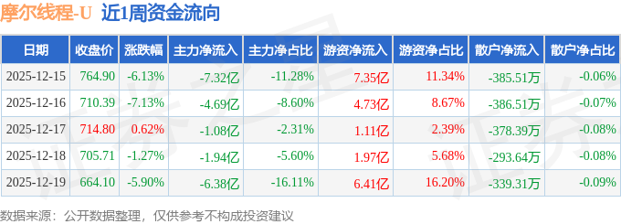 资金流向数据方面,本周摩尔线程主力资金合计净流出21.41亿元,游资资金合计净流入21.58亿元,散户资金合计净流出1783.38万元。本周资金流向一览见下表: