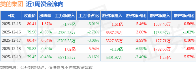 沪深股通持股方面,截止2025年12月19日收盘,美的集团深股通持股数为12.33亿股,占流通股比为1794.0%。