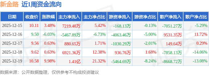 资金流向数据方面,本周新金路主力资金合计净流入2.37亿元,游资资金合计净流出9789.82万元,散户资金合计净流出1.39亿元。本周资金流向一览见下表: