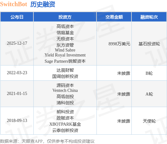 证券之星消息,根据天眼查APP于12月17日公布的信息整理,卧安机器人(深圳)股份有限公司基石投资轮融资,融资额8998万美元,参与投资的机构包括高瓴资本,信庭基金,无极资本,东方资管,Wind Sabre,Yield Royal Investment,Sage Partners锐智资本。