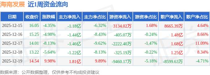 资金流向数据方面,本周海南发展主力资金合计净流出3.49亿元,游资资金合计净流出9278.8万元,散户资金合计净流入4.42亿元。本周资金流向一览见下表: