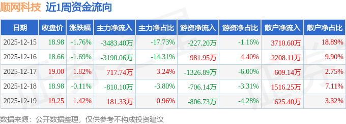 资金流向数据方面,本周顺网科技主力资金合计净流出6584.5万元,游资资金合计净流出2085.0万元,散户资金合计净流入8669.5万元。本周资金流向一览见下表: