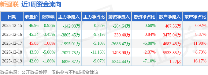 资金流向数据方面,本周新强联主力资金合计净流出1.98亿元,游资资金合计净流出6473.24万元,散户资金合计净流入2.63亿元。本周资金流向一览见下表: