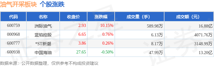 证券之星消息,12月22日油气开采板块较上一交易日上涨0.65%,洲际油气领涨。当日上证指数报收于3917.36,上涨0.69%。深证成指报收于13332.73,上涨1.47%。油气开采板块个股涨跌见下表: