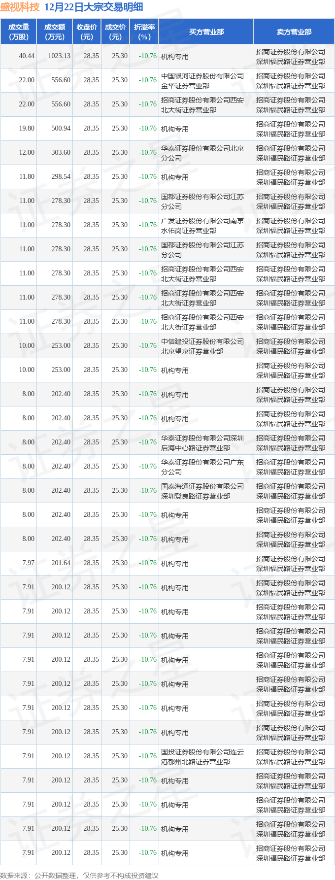 证券之星消息,12月22日盛视科技发生大宗交易,交易数据如下: