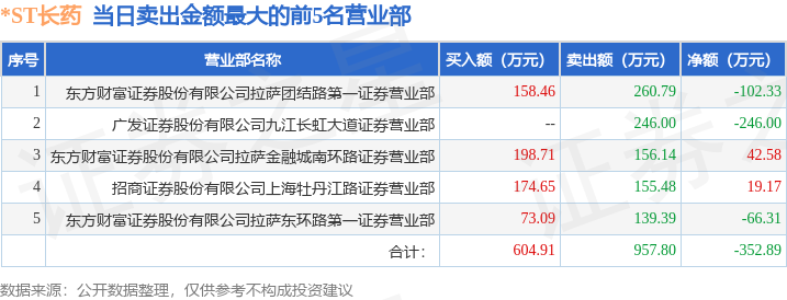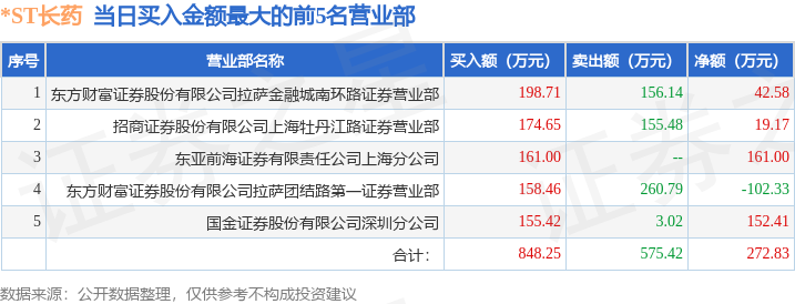 证券之星消息,沪深交易所2025年12月22日公布的交易公开信息显示,*ST长药(300391)因日涨幅达到15%的前5只证券登上龙虎榜。此次是近5个交易日内第1次上榜。