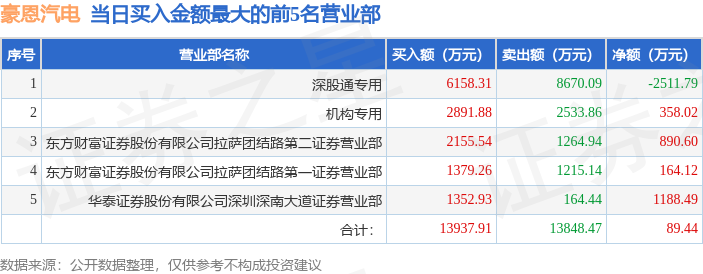 证券之星消息,沪深交易所2025年12月22日公布的交易公开信息显示,豪恩汽电(301488)因日换手率达到30%的前5只证券登上龙虎榜。此次是近5个交易日内第2次上榜。