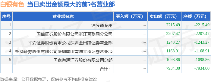 证券之星消息,沪深交易所2025年12月22日公布的交易公开信息显示,白银有色(601212)因有价格涨跌幅限制的日收盘价格涨幅偏离值达到7%的前五只证券登上龙虎榜。此次是近5个交易日内第1次上榜。