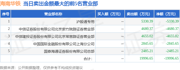 证券之星消息,沪深交易所2025年12月22日公布的交易公开信息显示,海南华铁(603300)因有价格涨跌幅限制的日收盘价格涨幅偏离值达到7%的前五只证券登上龙虎榜。此次是近5个交易日内第1次上榜。