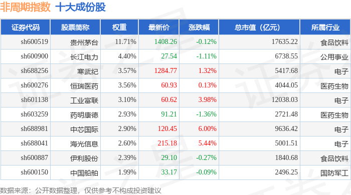 非周期(000064)指数十大成份股详情如下: