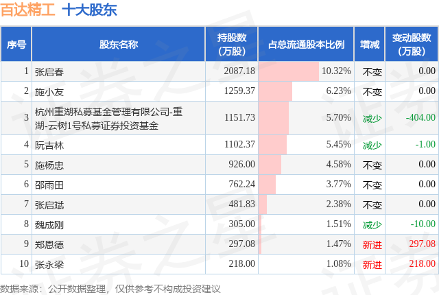 根据百达精工2025年三季报公布的十大股东详情如下: