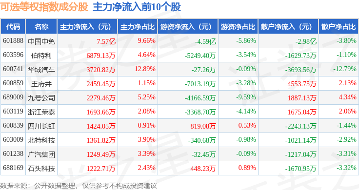 资金流向方面,可选等权(000073)指数成份股当日主力资金净流出合计11.68亿元,游资资金净流出合计2.46亿元,散户资金净流入合计14.14亿元。成份股资金流向详情见下表: