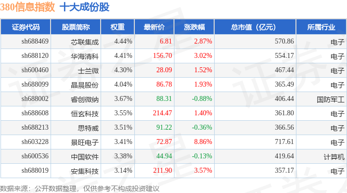 近10日内380信息(000111)指数成份股做了调整,新纳入了9只股票,剔除了6只股票。