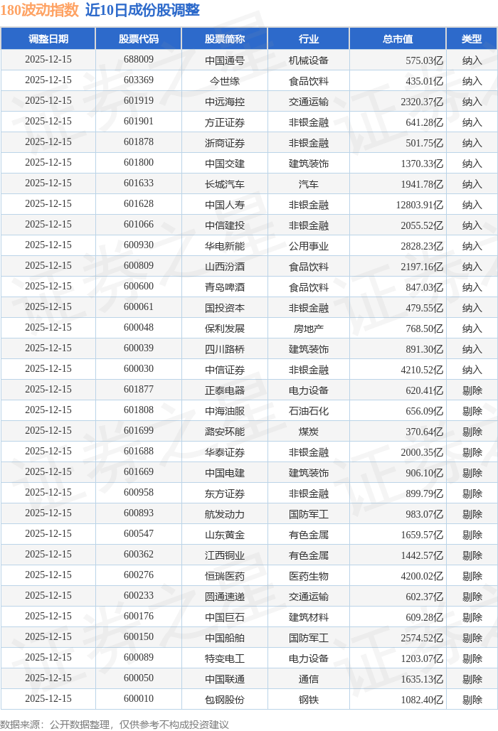 近10日内180波动(000129)指数成份股做了调整,新纳入了16只股票,剔除了16只股票。
