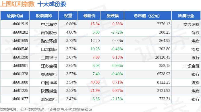 近10日内上国红利(000151)指数成份股做了调整,新纳入了6只股票,剔除了6只股票。
