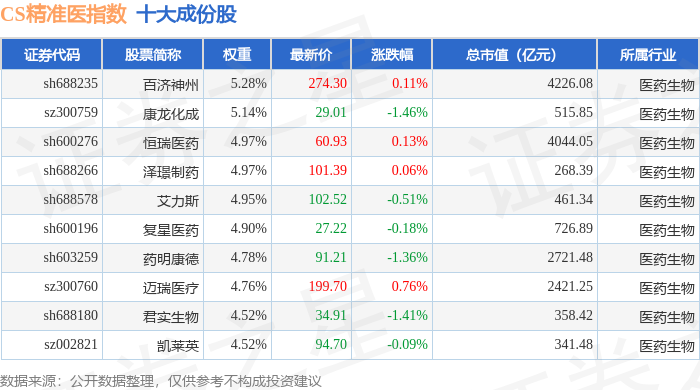 近10日内CS精准医(000863)指数成份股做了调整,新纳入了1只股票。