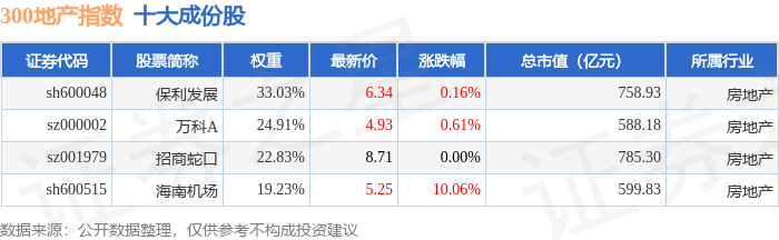 证券之星消息,12月22日,300地产(000952)指数报收于2527.55点,涨2.2%,成交36.2亿元,换手率1.63%。当日该指数成份股中,上涨的有3家,海南机场以10.06%的涨幅领涨。
