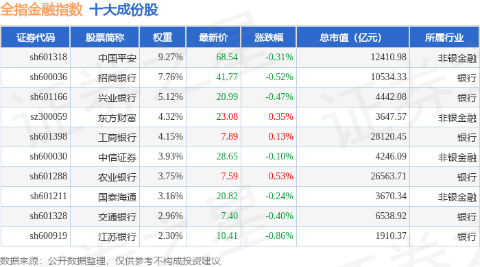 资金流向方面,全指金融(000992)指数成份股当日主力资金净流出合计19.1亿元,游资资金净流入合计12.24亿元,散户资金净流入合计6.86亿元。成份股资金流向详情见下表: