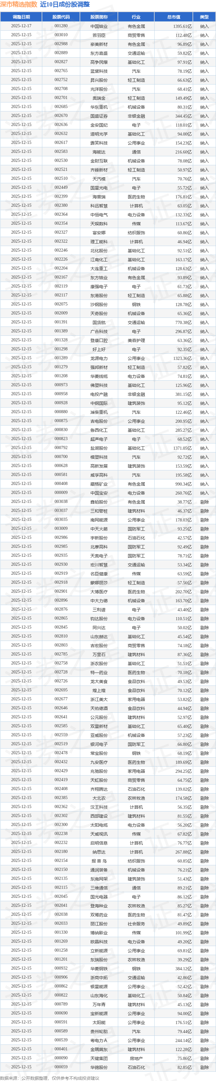 近10日内深市精选(399013)指数成份股做了调整,新纳入了53只股票,剔除了64只股票。