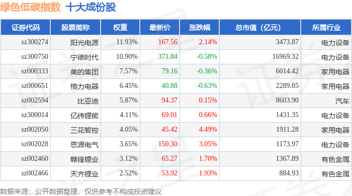 证券之星消息,12月22日,绿色低碳(399258)指数报收于4360.86点,涨1.06%,成交884.09亿元,换手率1.59%。当日该指数成份股中,上涨的有38家,晶盛机电以7.64%的涨幅领涨,下跌的有11家,惠城环保以12.43%的跌幅领跌。