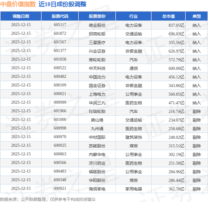 近10日内中盘价值(399375)指数成份股做了调整,新纳入了10只股票,剔除了10只股票。