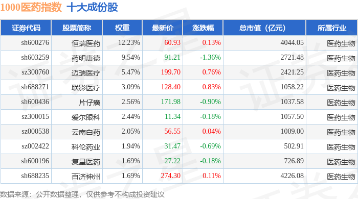 近10日内1000医药(399386)指数成份股做了调整,新纳入了3只股票,剔除了3只股票。
