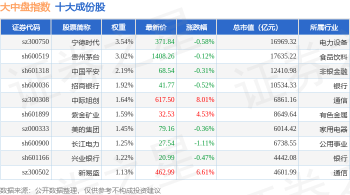 证券之星消息,12月22日,大中盘(399400)指数报收于4165.33点,涨1.06%,成交6285.46亿元,换手率0.71%。当日该指数成份股中,上涨的有276家,拓荆科技以10.37%的涨幅领涨,下跌的有202家,惠城环保以12.43%的跌幅领跌。