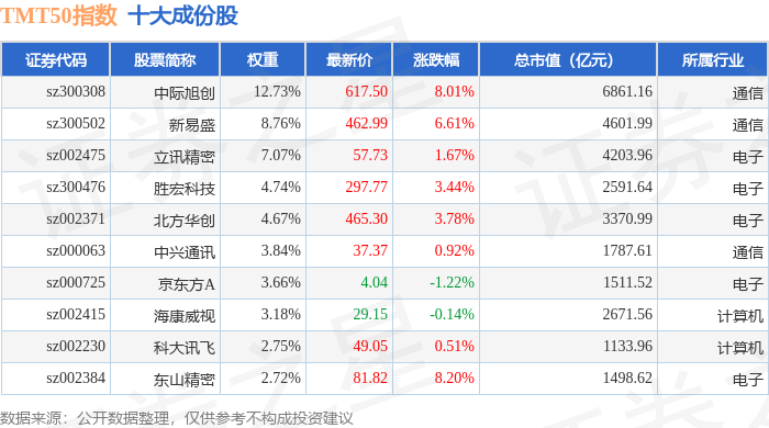 TMT50(399610)指数十大成份股详情如下: