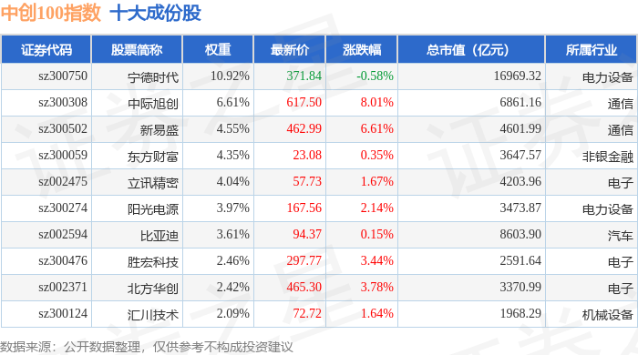 中创100(399612)指数十大成份股详情如下: