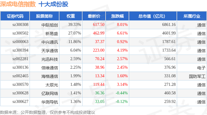 深成电信(399688)指数十大成份股详情如下: