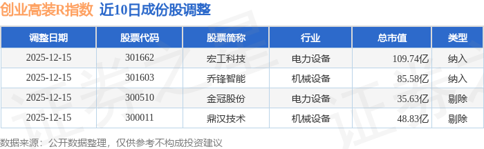 近10日内创业高装R(470040)指数成份股做了调整,新纳入了2只股票,剔除了2只股票。