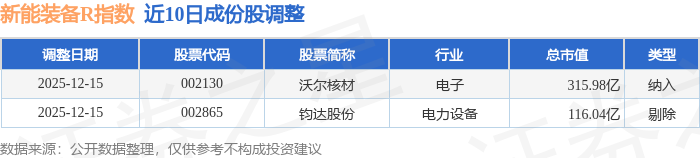 近10日内新能装备R(470043)指数成份股做了调整,新纳入了1只股票,剔除了1只股票。