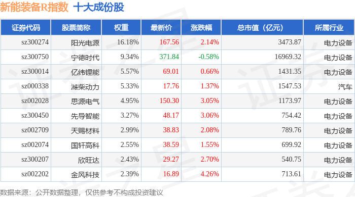 资金流向方面,新能装备R(470043)指数成份股当日主力资金净流入合计15.33亿元,游资资金净流出合计5.85亿元,散户资金净流出合计9.47亿元。成份股资金流向详情见下表: