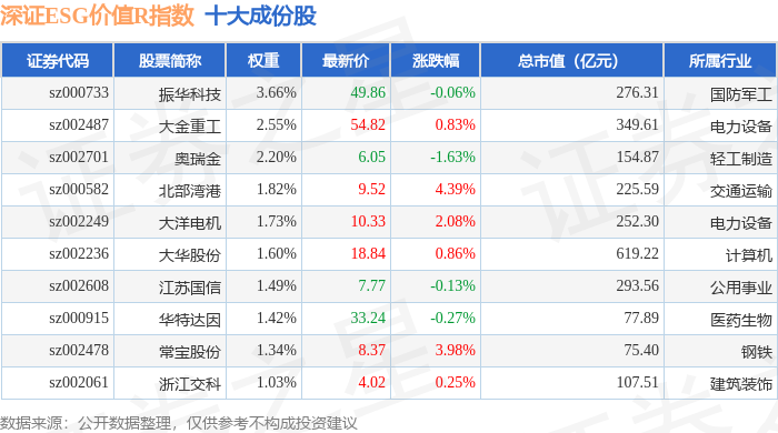 深证ESG价值R(470061)指数十大成份股详情如下: