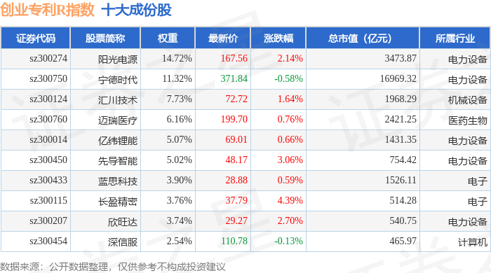 创业专利R(470068)指数十大成份股详情如下: