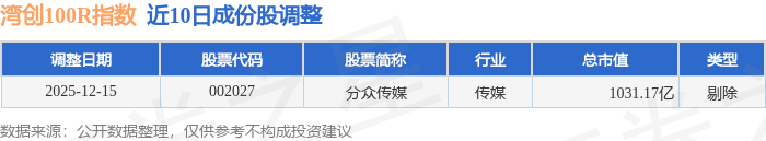 近10日内湾创100R(480001)指数成份股做了调整,剔除了1只股票。