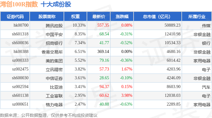 湾创100R(480001)指数十大成份股详情如下: