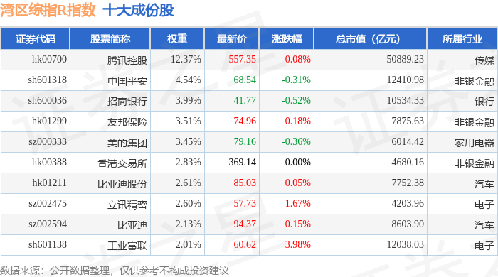 湾区综指R(480003)指数十大成份股详情如下: