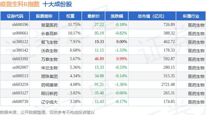 近10日内疫苗生科R(480015)指数成份股做了调整,新纳入了2只股票,剔除了2只股票。