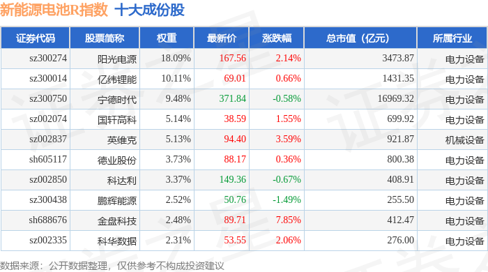 近10日内新能源电池R(480027)指数成份股做了调整,新纳入了5只股票,剔除了5只股票。