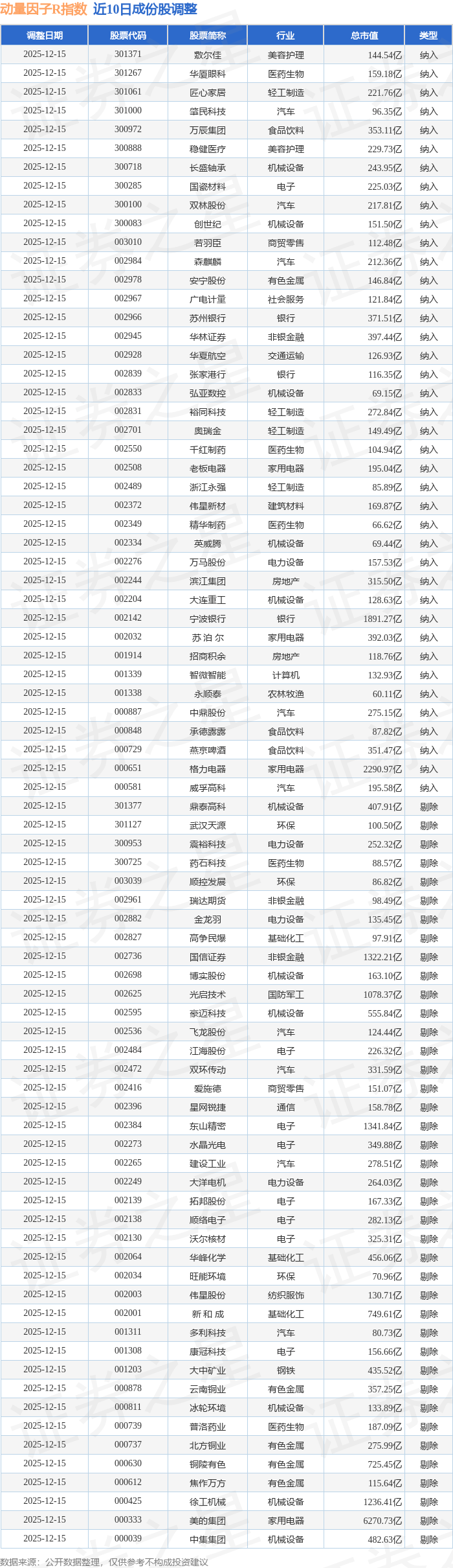 近10日内动量因子R(480057)指数成份股做了调整,新纳入了40只股票,剔除了40只股票。