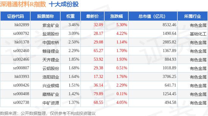 深港通材料R(483015)指数十大成份股详情如下: