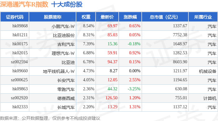 证券之星消息,12月22日,深港通汽车R(483039)指数报收于9287.53点,涨0.94%,成交579.95亿元,换手率2.82%。当日该指数成份股中,上涨的有92家,亚太股份以10.01%的涨幅领涨,下跌的有21家,航天智造以7.09%的跌幅领跌。