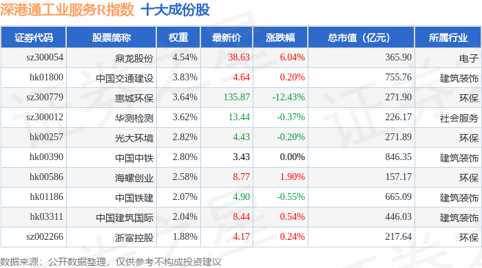 深港通工业服务R(483055)指数十大成份股详情如下: